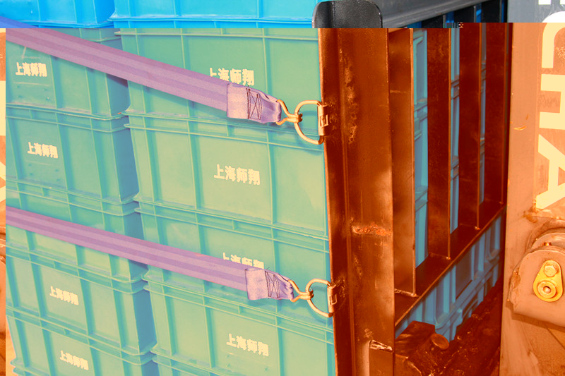 ● The binding strap is installed on the right side of the forklift guard rail frame (the right-hand side of the forklift driver).